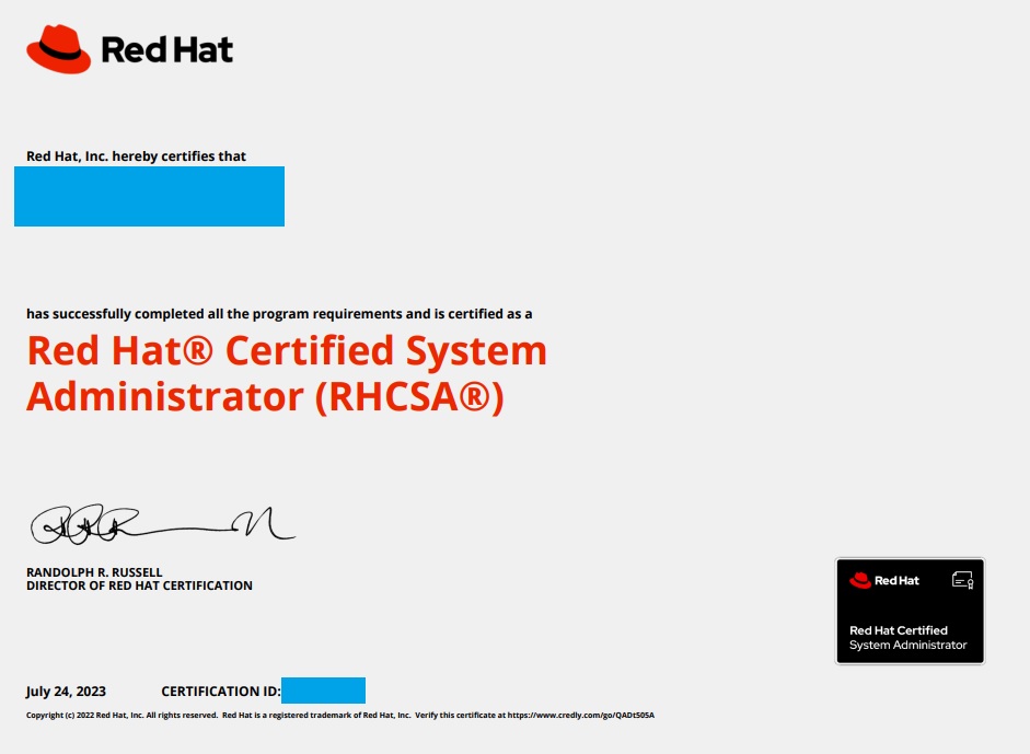 | Redhat - RHCSA 취득 후기 (0) | 2023.08.13 |