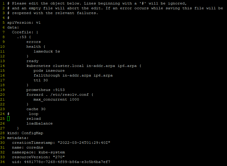 $ kubectl edit cm corends -n kube-system